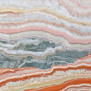 Rainbow Onyx is a unique red onyx composed of layers of gold, white, green and brown veining. Rainbow Onyx is